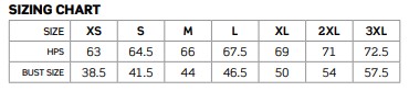 Bust Size (cm) | 38.5 | 41.5 | 44 | 46.5 | 50 | 54 | 57.5 |